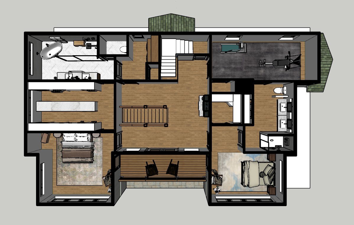 The second floor we took to a full second floor instead of a half, moved our primary suite and laundry, and added an additional guest room and workout room.